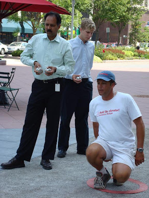 (side note: Mark pulled up his pant cuff and we saw ... something that resembled, well... he claims it's a medical device...) Anyhow, it was Mike/Jeff vs. Hitesh/Aaron for a second game which went well for Mike and me (7/1 adjusted 13/6) - then Hitesh had to Hitail it to work, leaving Aaron to continue the game (un-ranked for fun) to 13 points. Which he did, taking the win 13/12. For those of you who think playing/working downtown in Detroit is dangerous... check out the police presence...(photo) . Nothing to worry 'bout here...
